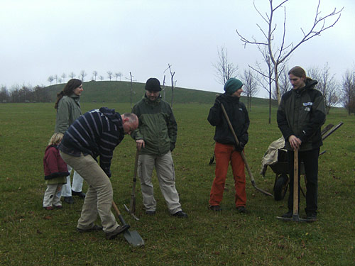 Eine der heutigen Aktionen bestand darin, gemeinsam auf einer Wiese einen Walnussbaum zu pflanzen.