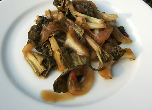Mein Bio-Bauer auf dem Wochenmarkt hatte gestern Pak Choi im Angebot, den ich bisher nur von Fotos kannte. Und weil heute zur Abwechslung den ganzen Tag die Sonne schien, war das die Gelegenheit, den Trichterkocher zu entstauben. Die Spitzentemperatur betrug heute im Kocher 110°C.