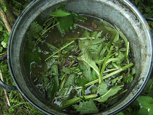 Beinwell lässt sich gut als Medizin für den Gartenboden und als Dünger einsetzen. Gestern habe ich eine Mischung aus Brennnessel- und Beinwellblättern mit Wasser zur Verjauchung angesetzt. Diese bleibt nun etwa 2 Wochen zugedeckt stehen, dann kann sie mit Wasser 1:10 verdünnt auf die Beete gegossen werden.
