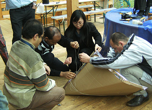Seit ein paar Tagen bin ich nun im Solarzentrum MV, und die letzten beiden Tage war hier eine Gruppe von 13 Teilnehmer/innen aus 13 Nationen zu Gast, die 14 Monate lang in Potsdam eine Fortbildung bei Inwent genossen haben und in 14 Tagen wieder in ihre Heimatländer reisen. Alle arbeiten in Ministerien. Die Länderliste, soweit ich sie noch zusammenbekomme, beinhaltet: Nepal, Vietnam, Indonesien, die Philippinen, Malawi, Kanada, Kamerun, Eritrea, Moldawien, Yemen, Tansania, Peru. Für diese Gruppe habe ich gestern einen kurzen Vortrag über Solarkocher gehalten (mein erster Vortrag auf englisch) und mit einigen der Teilnehmer einen Trichterkocher gebaut. Nun freue ich mich auf die Konferenz am Freitag 🙂