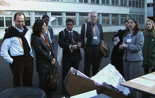 Eine international bunt gemischte Gruppe von Teilnehmern der gerade in Bonn statfindenden UNESCO-Weltkonferenz „Bildung für nachhaltige Entwicklung“ besuchte am Nachmittag das Kolleg. Am Stand der Solarkochschule gab es angeregte Gespräche über die verschiedenen Solarkochertypen.
