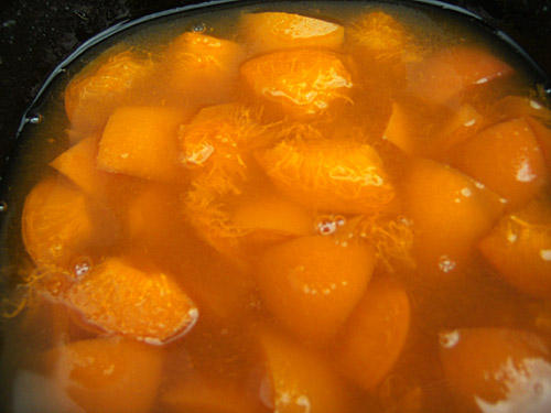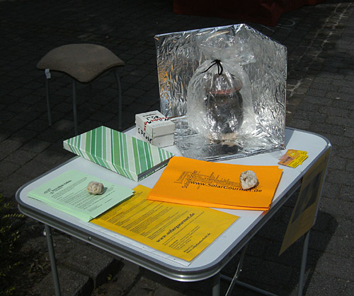 Den ganzen Tag schien die Sonne, wurde aber immer wieder von Wolken verdeckt, insbesondere am Nachmittag, so dass die Temperatur im Würfelkocher die meiste Zeit zwischen 60 und 70°C pendelte und über 75°C in der Spitze nicht hinauskam. Die Aprikosen, die ich zusammen mit etwas Wasser und Zucker ins Kochglas gegeben hatte, waren trotzdem hinterher wunderbar gar. Kompott von solch weichem Obst läßt sich also auch bei so niedrigen Temperaturen herstellen. Der Kocher war zwischen 10.30 Uhr und 17 Uhr aufgebaut.