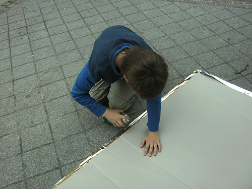 Das Publikum ging ohne jegliche Reaktion vorbei, was nicht wirklich überrascht, weil ein Solarkocher ohne Sonnenschein wenig überzeugend wirkt (und das Abstraktionsvermögen der meisten Passanten überfordert). Ich hatte auch meinen 180er Trichterkocher aufgebaut, und immerhin zwei Schüler hatten im Laufe der Veranstaltung Lust, einen eigenen Trichterkocher zu bauen.
